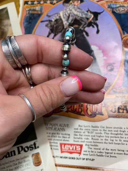Each bead is expertly oxidized and polished to create a deep, radiant finish reminiscent of traditional Navajo pearls, but with a modern edge.