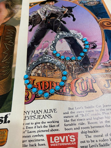 The Sammy are a set of stamped sterling silver and turquoise earrings