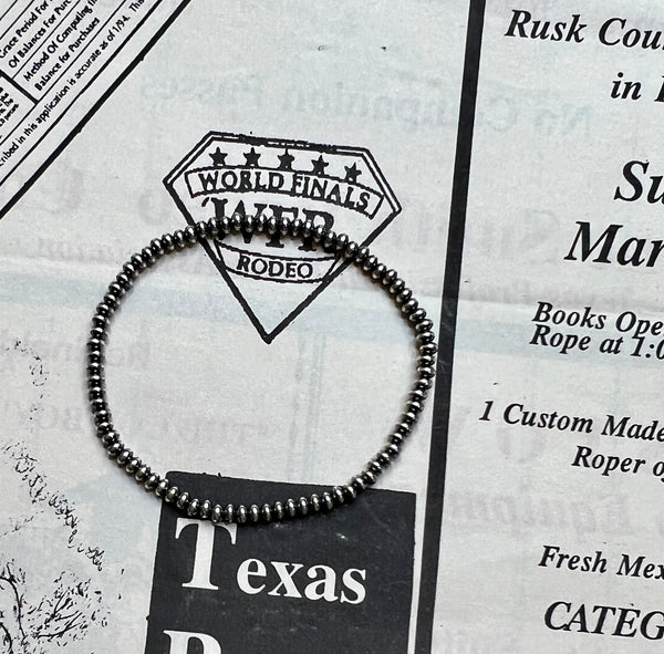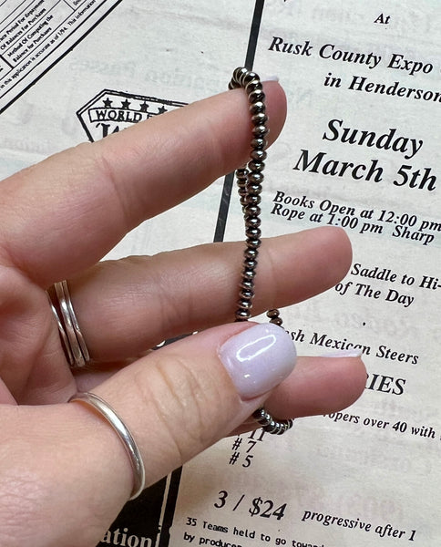 The Fiona are a 3mm saucer navajo pearl stretch bracelet