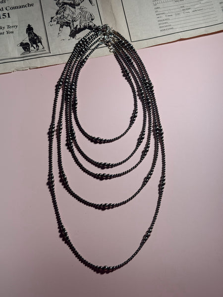 Each bead is expertly oxidized and polished to create a deep, radiant finish reminiscent of traditional Navajo pearls, but with a modern edge.