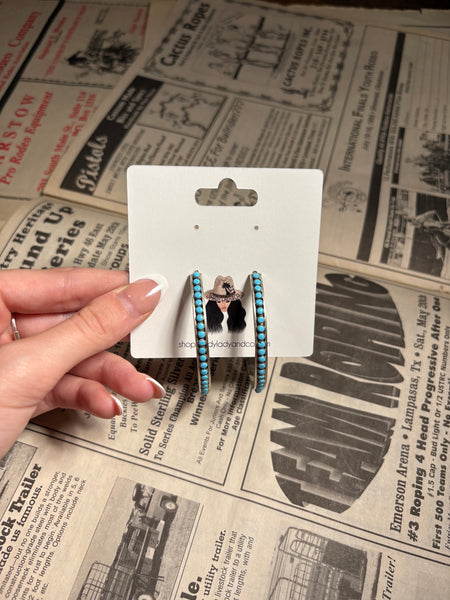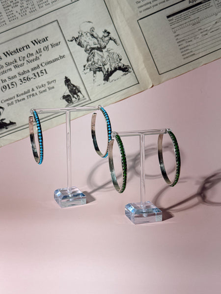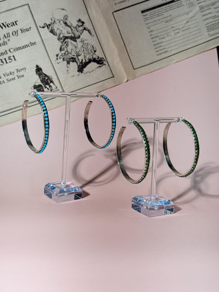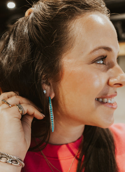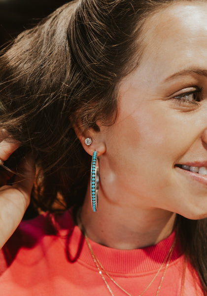 The Sylvie is a set of light weight turquoise hoops.